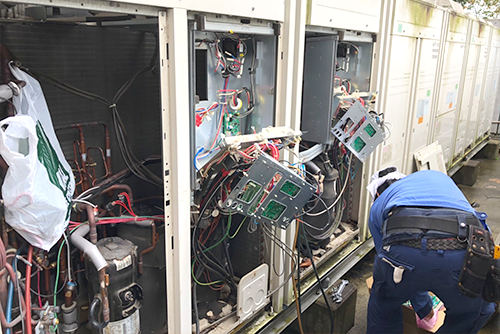 メーカーに関係なく、空調機の新設工事や入替工事、移設工事を行ないます。またフロンガスの回収や破壊処理も行ないます。
